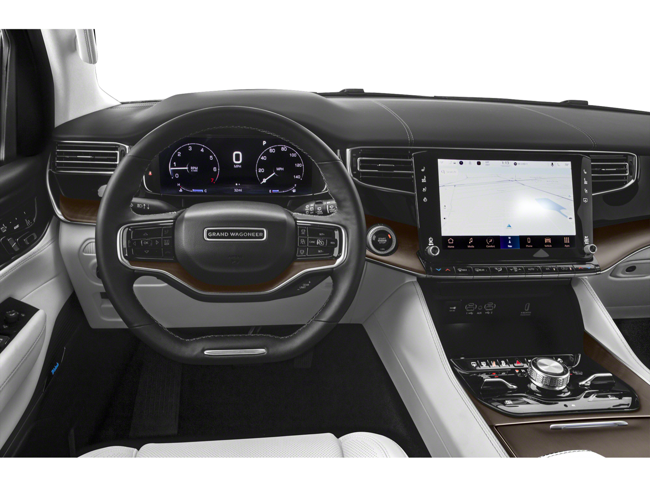 3.92 Rear Axle Ratio, 3rd row seats: bench, 4-Wheel Disc Brakes, ABS brakes, Adjustable pedals, Air Conditioning, All-Season Floor Mats, Alloy wheels, AM/FM radio: SiriusXM with 360L, Amazon Fire TV Built-In, Anti-whiplash front head restraints, Audio memory, Auto High-beam Headlights, Auto-dimming door mirrors, Auto-dimming Rear-View mirror, Auto-leveling suspension, Automatic temperature control, Body Color Roof, Brake assist, Bumpers: body-color, Cargo Tray, Compass, Delay-off headlights, Driver door bin, Driver vanity mirror, Driver's Seat Mounted Armrest, Dual front impact airbags, Dual front side impact airbags, Electronic Stability Control, Four wheel independent suspension, Front anti-roll bar, Front Bucket Seats, Front Center Armrest w/Storage, Front dual zone A/C, Front fog lights, Front reading lights, Fully automatic headlights, Garage door transmitter, Genuine wood console insert, Genuine wood dashboard insert, Genuine wood door panel insert, Heads-Up Display, Heated door mirrors, Heated front seats, Heated rear seats, Heated steering wheel, Illuminated entry, Knee airbag, Leather steering wheel, Low tire pressure warning, Memory seat, MOPAR Interior Protection Package, Navigation System, Night vision lights, Normal Duty Suspension, Occupant sensing airbag, Outside temperature display, Overhead airbag, Overhead console, Panic alarm, Passenger door bin, Passenger seat mounted armrest, Passenger vanity mirror, Pedal memory, Power adjustable front head restraints, Power door mirrors, Power driver seat, Power Liftgate, Power moonroof, Power passenger seat, Power steering, Power windows, Premium Leather Trimmed Bucket Seats, Quick Order Package 23W, Radio data system, Radio: Uconnect 5 Nav w/12.0 Display, Rain sensing wipers, Rear air conditioning, Rear anti-roll bar, Rear dual zone A/C, Rear reading lights, Rear seat center armrest, Rear Seat Video Group 1, Rear window defroster, Rear window wiper, Reclining 3rd row seat, Remote keyless entry, Roof rack, Seatback Video Screens, Security system, Speed control, Speed-sensing steering, Speed-Sensitive Wipers, Split folding rear seat, Steering wheel memory, Steering wheel mounted audio controls, Tachometer, Telescoping steering wheel, Tilt steering wheel, Traction control, Trip computer, Turn signal indicator mirrors, Two Tone Paint Group, Variably intermittent wipers, Ventilated front seats, Ventilated rear seats, Video USB Port, Voltmeter, Wheels: 22 x 9.0 Painted Aluminum, Wheels: 22 x 9.0 Premium 4 Aluminum.