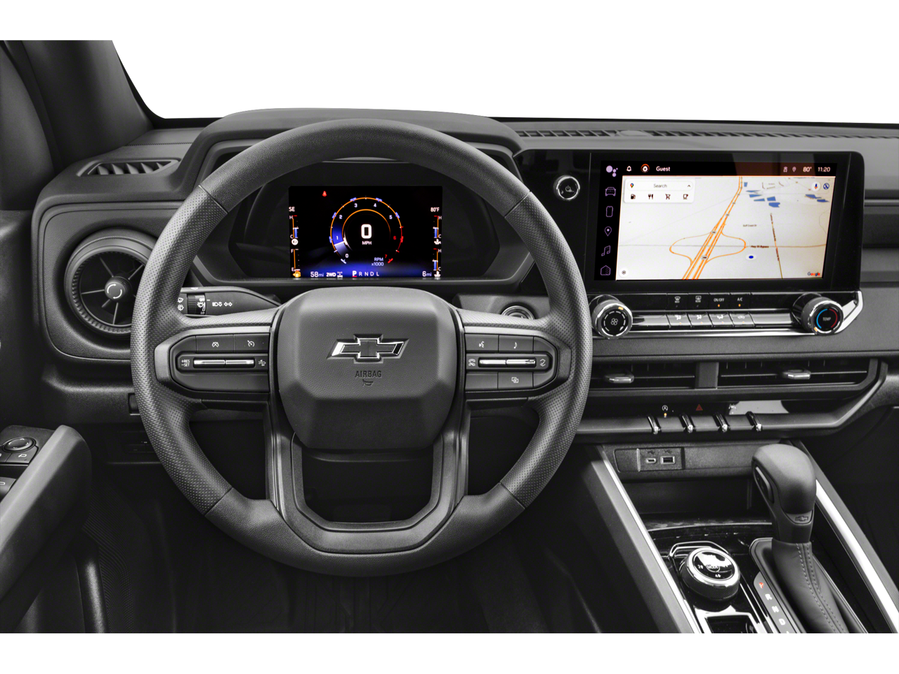 4WD, 1st & 2nd Row All-Weather Floor Liner (LPO), 220 Amp Generator, 3.42 Rear Axle Ratio, 4-Way Manual Passenger Seat Adjuster, 4-Wheel Disc Brakes, 6 Speakers, 6-Speaker Audio System Feature, 6-Way Manual Driver Seat Adjuster, 8-Way Power Driver Seat Adjuster, ABS brakes, Adaptive Cruise Control, Advanced Trailering Package, Air Conditioning, Alloy wheels, AM/FM radio: SiriusXM, Apple CarPlay/Android Auto, Auto High-beam Headlights, Automatic Emergency Braking, Black Bowtie Emblem (LPO) (DISC), Black Nameplates (LPO), Black Painted Mirror Caps, Black Spray-On Bedliner w/Chevrolet Logo, Blind Zone Steering Assist, Brake assist, Chevrolet Performance Black Exhaust Tip (LPO), Chevy Safety Assist, Cloth Seat Trim, Compass, Dark Essentials Package (LPO), Delay-off headlights, Door Sill Plates (LPO), Driver door bin, Driver vanity mirror, Dual front impact airbags, Dual front side impact airbags, Electronic Automatic Cruise Control, Electronic Stability Control, EZ-Lift & Lower Tailgate, Following Distance Indicator, Forward Collision Alert, Front anti-roll bar, Front Bucket Seats, Front Center Armrest, Front Pedestrian & Bicyclist Braking, Front wheel independent suspension, HD Surround Vision, Heated Power-Adjustable Outside Mirrors, Heavy-Duty Trailering Package, Illuminated entry, Integrated Trailer Brake Controller, IntelliBeam Automatic High Beam On/Off, Lane Keep Assist w/Lane Departure Warning, Low tire pressure warning, Manual Rear-Sliding Window, Navigation System, Occupant sensing airbag, Outside temperature display, Overhead airbag, Overhead console, Panic alarm, Passenger door bin, Passenger vanity mirror, Power door mirrors, Power Driver Lumbar Control Seat Adjuster, Power steering, Power windows, Preferred Equipment Group 0TR, Radio data system, Radio: 11.3 Diagonal Advanced Color LCD Display, Rear Cross Traffic Braking, Rear Park Assist, Rear Pedestrian Alert, Rear reading lights, Rear step bumper, Rear-Window Electric Defogger, Remote keyless entry, Safety Package, Security system, SiriusXM Radio, Speed-sensing steering, Split folding rear seat, Steering Wheel Mounted Audio Controls, Steering wheel mounted audio controls, StowFlex Tailgate Storage Compartment, Tachometer, Tailgate Keyed Cylinder Lock, Technology Package, Tilt steering wheel, Traction control, Trail Boss Convenience Package, Trail Boss Convenience Package II, Trailering App, Trip computer, Variably intermittent wipers, Wheels: 18 x 8.5 Black High Gloss Aluminum, Wheels: 20 Black (LPO), Wheels: 20 x 9 Aluminum Transit, Wireless Phone Projection, 4WD.