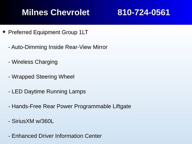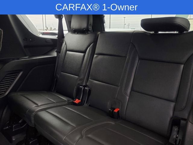 Chevrolet Certified Pre-Owned Certified, 4WD, Black Leather, 10-Way Power Driver & Passenger Seat Adjusters, 1st & 2nd Row Color-Keyed Carpeted Floor Mats, 3.23 Rear Axle Ratio, 3rd row seats: split-bench, 4-Wheel Disc Brakes, 9 Speakers, ABS brakes, Air Conditioning, Alloy wheels, AM/FM radio: SiriusXM with 360L, Apple CarPlay/Android Auto, Auto High-beam Headlights, Auto-Dimming Inside Rear-View Mirror, Auto-dimming Rear-View mirror, Automatic temperature control, Bose 9-Speaker Stereo Audio System Feature, Brake assist, Bright Front & Rear Door Sill Plates, Bumpers: body-color, Color-Keyed Carpeting Floor Covering, Compass, Delay-off headlights, Deleted 3 Years of OnStar Remote Access, Driver & Front Outboard Passenger Airbags, Driver door bin, Driver vanity mirror, Dual front impact airbags, Dual front side impact airbags, Electronic Stability Control, Emergency communication system: OnStar and Chevrolet connected services capable, Enhanced Driver Information Center, Floor Console w/Storage Area, Four wheel independent suspension, Front anti-roll bar, Front Bucket Seats, Front Center Armrest, Front dual zone A/C, Front High-Back Reclining Bucket Seats, Front reading lights, Fully automatic headlights, Garage door transmitter, Hands-Free Rear Power Programmable Liftgate, Heated door mirrors, Heated Driver & Front Passenger Seats, Heated front seats, Illuminated entry, Infotainment Display, Leather-Appointed Seat Trim, LED Daytime Running Lamps, Low tire pressure warning, Memory seat, Memory Settings for Driver, Navigation System, Occupant sensing airbag, Outside temperature display, Overhead airbag, Overhead console, Panic alarm, Passenger door bin, Passenger vanity mirror, Power door mirrors, Power driver seat, Power Liftgate, Power passenger seat, Power steering, Power windows, Preferred Equipment Group 1LT, Premium audio system: Chevrolet Infotainment 3 Premium, Premium Smooth Ride Suspension, Radio: Chevrolet Infotainment 3 Premium System, Rain sensing wipers, Rear air conditioning, Rear anti-roll bar, Rear reading lights, Rear seat center armrest, Rear window defroster, Rear window wiper, Remote keyless entry, Remote Start, Roof rack: xxxxxx, Security system, SiriusXM w/360L, Speed control, Speed-sensing steering, Split folding rear seat, Spoiler, Steering wheel mounted audio controls, Tachometer, Telescoping steering wheel, Tilt steering wheel, Traction control, Trip computer, Universal Home Remote, Variably intermittent wipers, Voltmeter, Wheels: 18 x 8.5 Bright Silver Painted Aluminum, Wireless Charging, Wrapped Steering Wheel, 4WD, Black Leather.